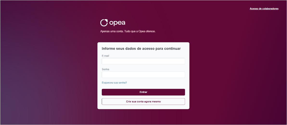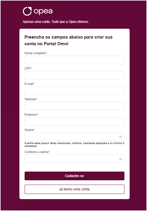 Em caso de dúvidas e/ou dificuldades técnicas com a criação da conta, solicitamos que envie um e-mail para omni@opea.com.br