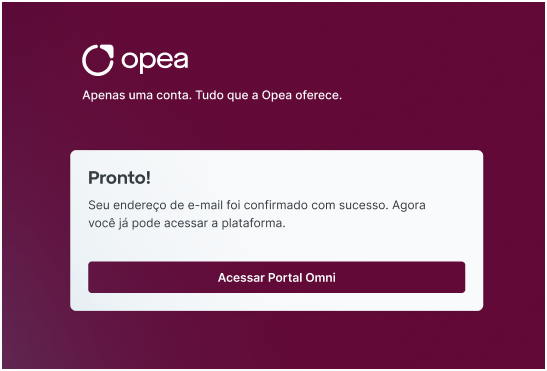 Após a verificação do e-mail de cadastro, será exibida uma mensagem de confirmação.