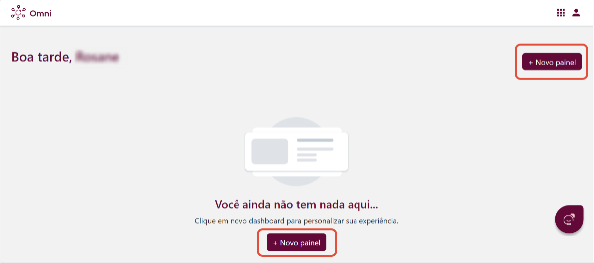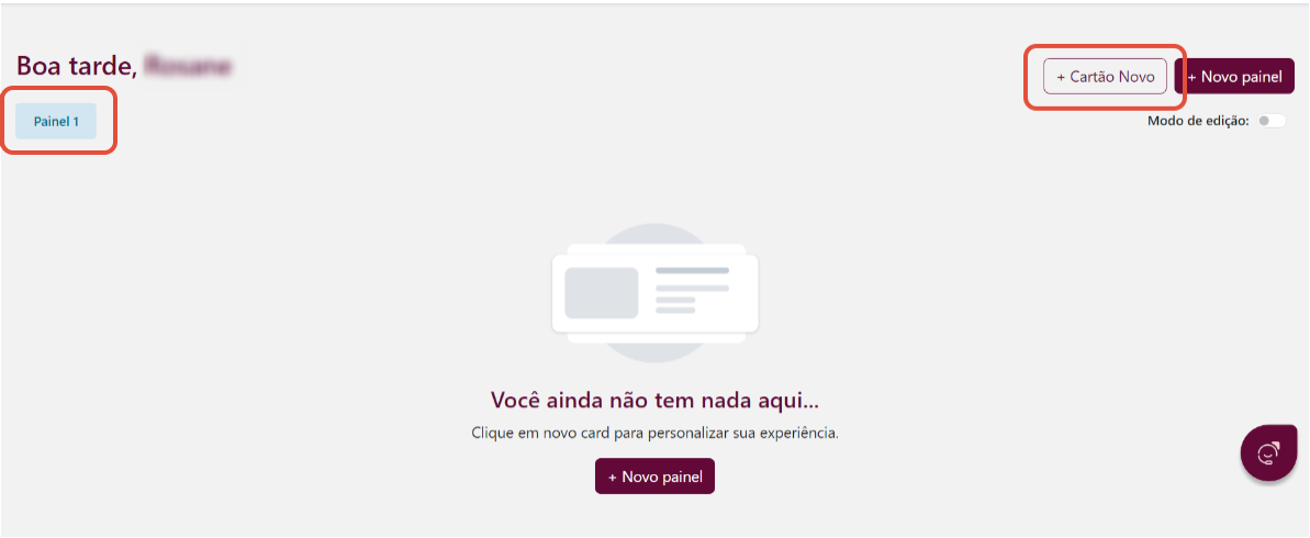 Após o painel ser criado, você será redirecionado de volta à tela inicial, onde poderá prosseguir com a criação dos cards que integrarão o painel.