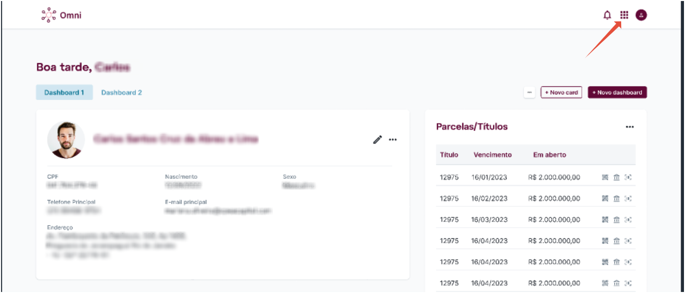 Figura 2 - Dashboard do Portal Omni: menu de serviços