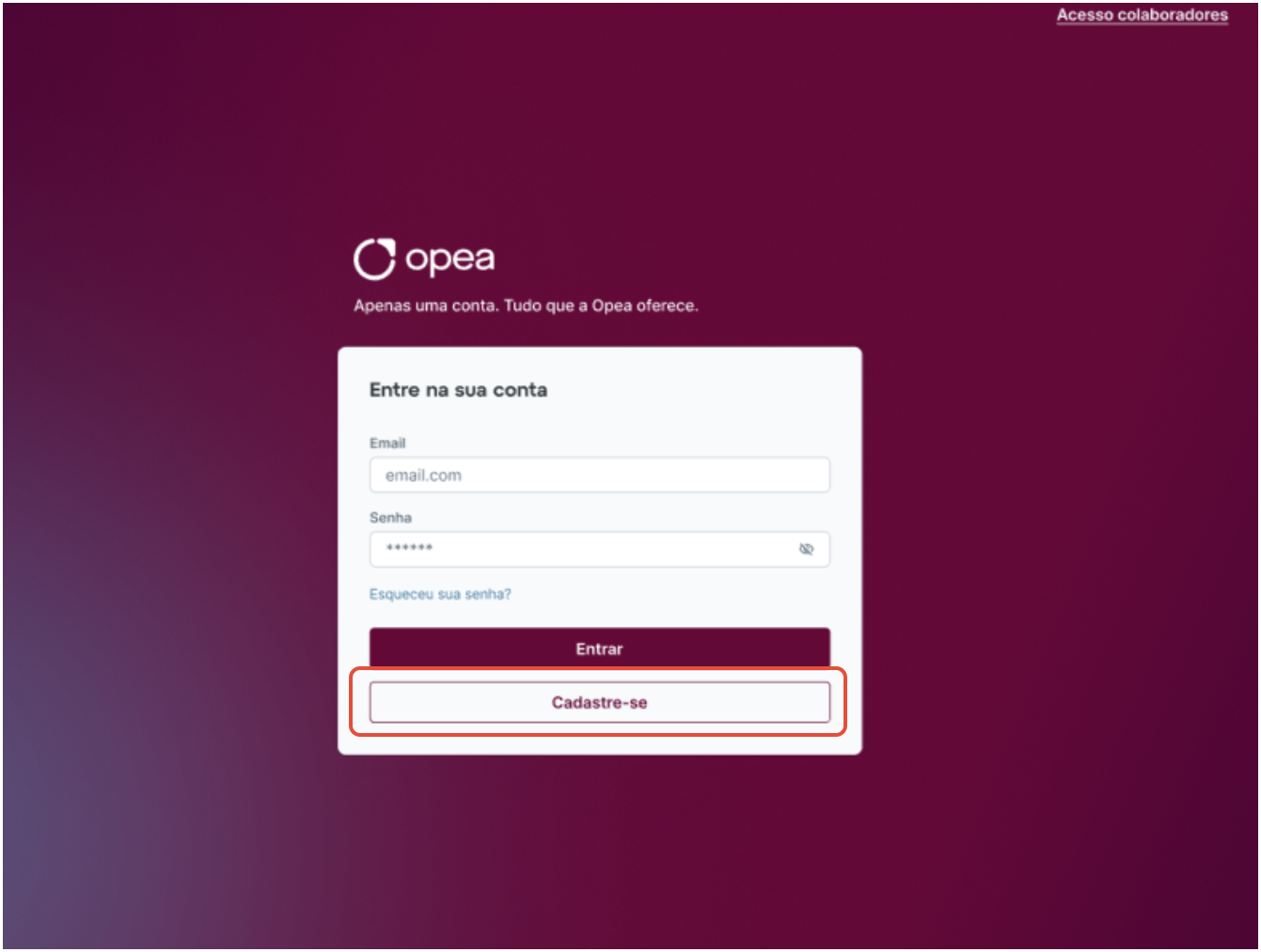 Após concluir o cadastro, envie um e-mail para o endereço omni@opeacapital.com solicitando o acesso ao Portal de Soluções de Crédito.