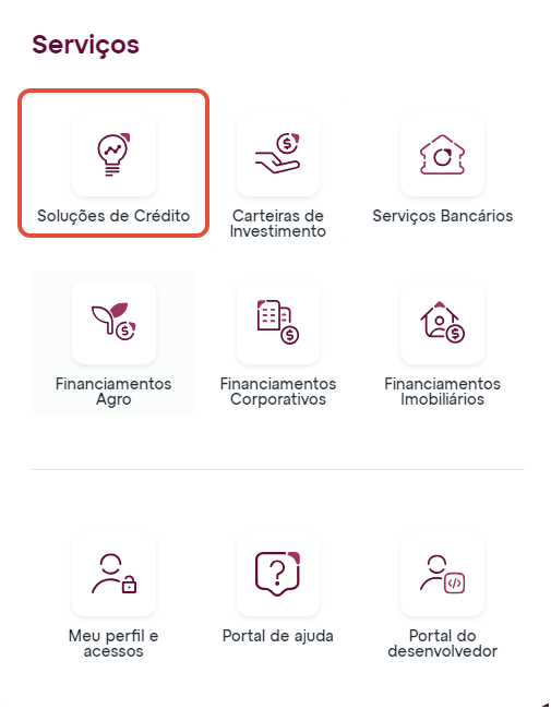 Com o acesso liberado, clique no ícone de "Serviços", conforme indicado na Figura 2, para visualizar a lista de sistemas disponíveis. Em seguida, selecione a opção "Soluções de Crédito" (Figura 3).